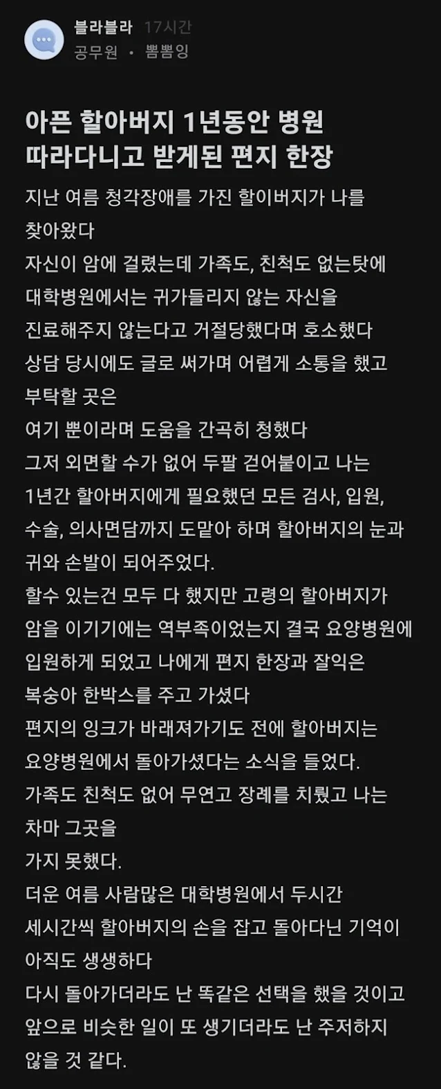 청각장애 할아버지의 마지막 편지, 함께한 1년, 고마운 공무원. July 10, 2025 공무원분, 정말 큰 일 하셨습니다.대신 감사인사 드립니다. Share Get link Facebook X Pinterest Email Other Apps Labels fun life Share Get link Facebook X Pinterest Email Other Apps Comments